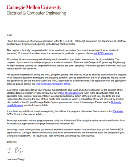 首先你的第一件事情當然是要先收到學校的Admission Letter,就是告訴你Admit還是Reject的那封信裡面會附的一個正式的PDF檔案(或者是靠近入學日期才會出現在學校的application系統上面,要再自己去找) Admission Letter大概長這個樣子,要收好因為後面的步驟會用到